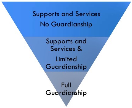 Guardianship is the most restricted option on the continuum of support, and recent Court cases have led to the exploration of less restrictive options.